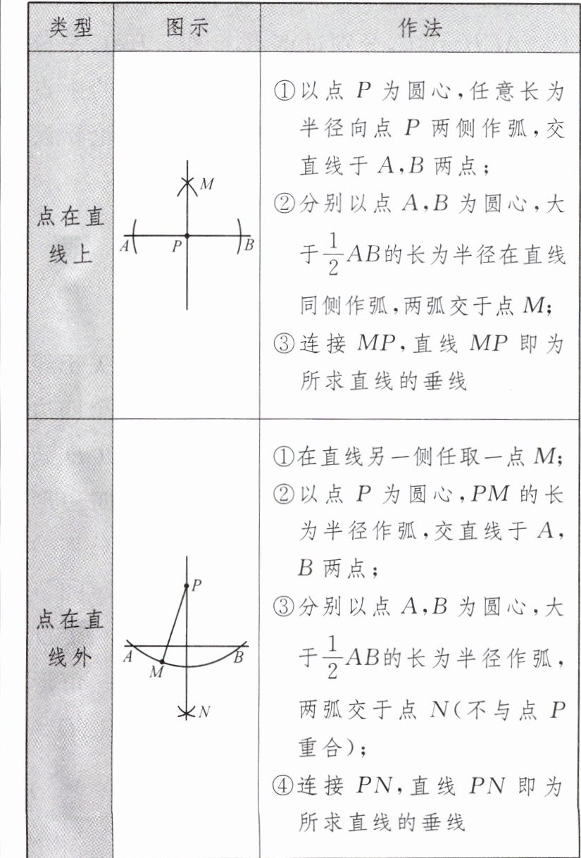 基本作图五:过一点作已知直线的垂线。
