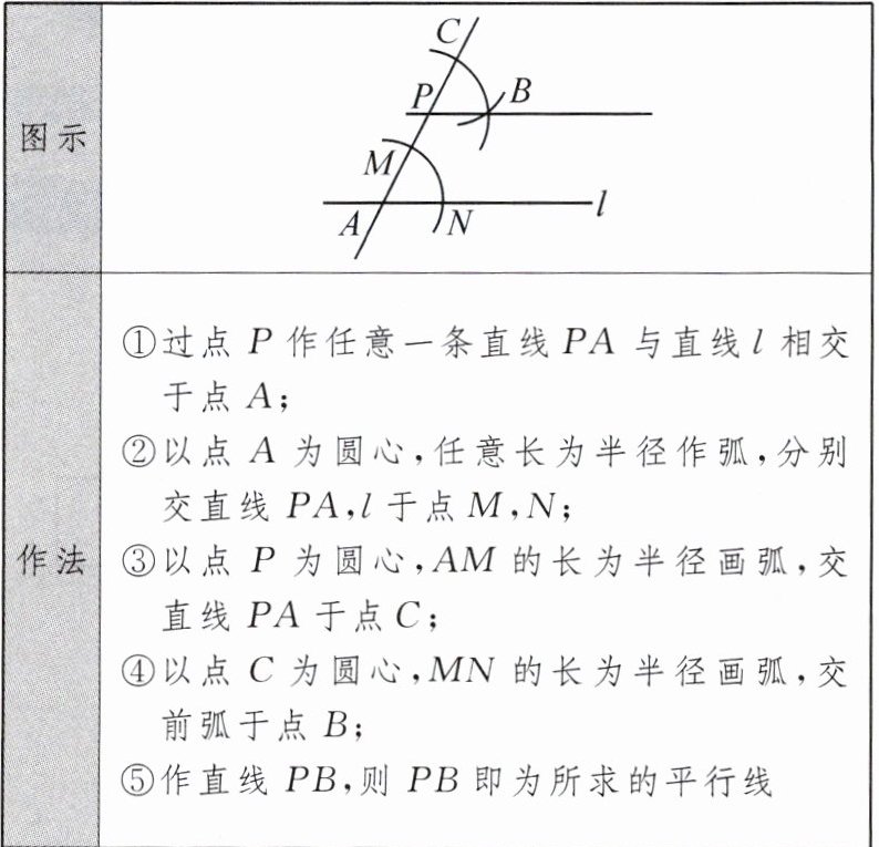 2. 【2022版新课标新增内容】过直线外一点作这条直线的平行线。