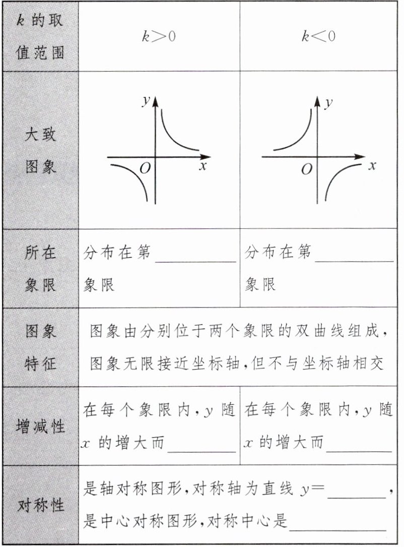 一般地,形如 $ y = \frac{k}{x} $($ k $ 为常数,$ k \neq $