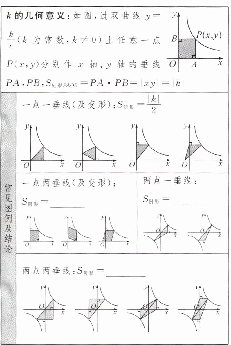 题中已知面积时考虑用 $ k $ 的几何意义。由面积得 $ |k| $,再结合图象所在象限判断 $ k $