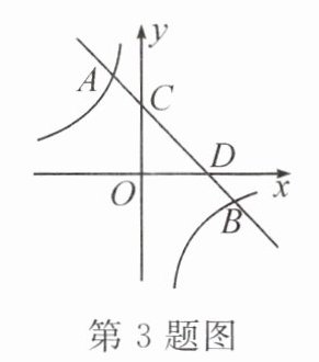 3. 如图,在平面直角坐标系中,一次函数 $ y_1 = -x + 2 $ 的图象与反比例函数 $ y_2 = -\frac{3}{x} $ 的图象交于 $ A(-1, 3) $,$ B(3, -1) $ 两点,与 $ y $ 轴、$ x $ 轴分别交于 $ C $,$ D $ 两点,则下列结论正确的是(