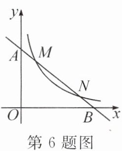 6. 【运算能力】如图,直线 $ y = -\frac{3}{4}x + 6 $ 交坐标轴于点 $ A $,$ B $,交反比例函数 $ y = \frac{k}{x} $($ x > 0 $)的图象于点 $ M $,$ N $。若 $ MN = AM + BN $,则 $ k $ 的值为(