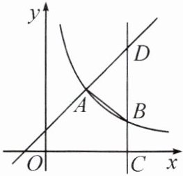 (2)把$x=4$代入$y=x+1$,得$y=5,\therefore D(4,5)$.把$x=4$代入$y=\frac {6}{x}$,得$y=\frac {3}{2},\therefore B(4,\frac {3}{2}).\therefore BD=5-\frac {3}{2}=\frac {7}{2}.\therefore S_{\triangle ABD}=\frac {1}{2}×\frac {7}{2}×(4-2)=\frac {7}{2}.$
