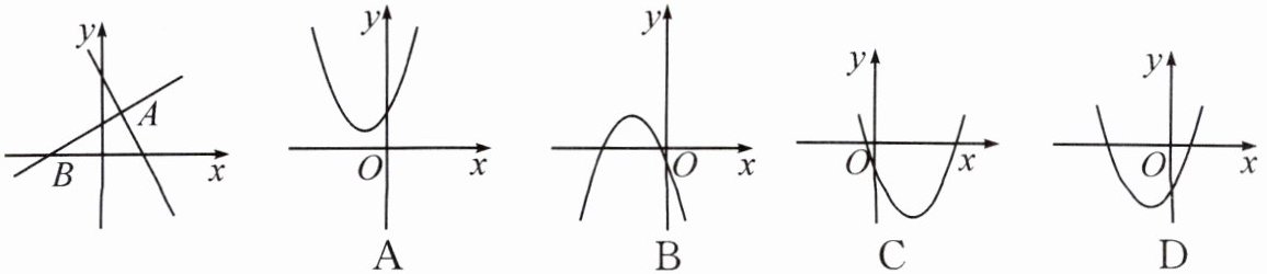 (2024·合肥模拟)如图,已知一次函数 $ y = ax + b $($ a \neq 0 $)的图象与一次函数 $ y = -2x + 4 $ 的图象交于第一象限的点 $ A $,与 $ x $ 轴交于点 $ B(-2,0) $,则函数 $ y = ax^2 + bx + a - b $ 的图象可能是()