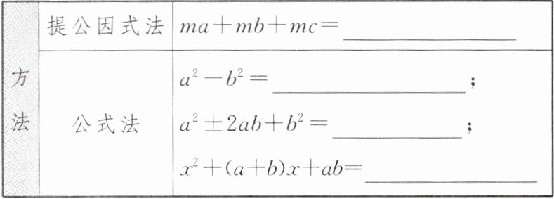 $m(a+b+c)$;$(a + b)(a - b)$;$(a\pm b)^{2}$;$(x + a)(x + b)$