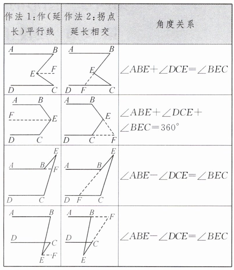 【拓展3】拐点平行线求角度的四种辅助线作法:
