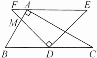 6. (2021·安徽T5·4分)将两个直角三角板按如图所示的方式摆放,其中$ \angle BAC = \angle EDF = 90^{\circ} $,$ \angle E = 45^{\circ} $,$ \angle C = 30^{\circ} $,AB与DF交于点M。若$ BC // EF $,则$ \angle BMD $的度数为(