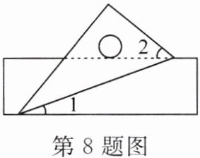 8. (2017·安徽改编)将一把直尺和一个含$ 30^{\circ} $角的直角三角板按如图所示的方式放置。若$ \angle 1 = 20^{\circ} $,则$ \angle 2 = $