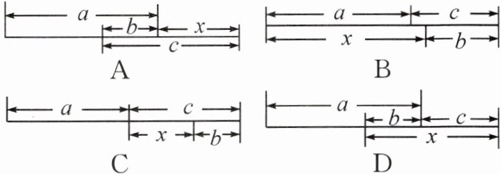 2. 下列四个图中,能表示线段$ x = a + c - b $的是(