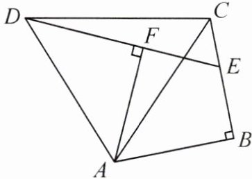 5. 如图,在四边形$ABCD$中,$\angle B = 90°$,连接对角线$AC$,且$AC = AD$,点$E$在边$BC$上,连接$DE$,过点$A$作$AF \perp DE$,垂足为$F$。若$AB = AF$,求证: