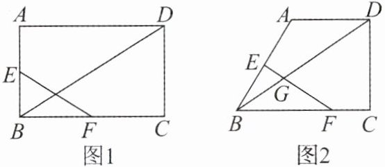 (2)如图2,在四边形 $ABCD$ 中,$AD// BC$,$\angle BCD = 90^{\circ}$,$E$ 是 $AB$ 的中点,点 $F$ 在边 $BC$ 上。若 $AD = 2CF$,$EF$ 与 $BD$ 交于点 $G$,求证:$BG = FG$。