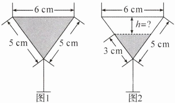 3. 如图,图1是装满了液体的高脚杯(数据如图),用去部分液体后,放在水平的桌面上,如图2所示,此时液面距离杯口的距离 $h=$(