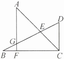 2. (2024·合肥一模)如图,在 $Rt\triangle BCD$ 中,$\angle BCD = 90^{\circ}$,$CD = 4$,$AC$ 平分 $\angle BCD$,交 $BD$ 于点 $E$,$AF\perp BC$ 于点 $F$,交 $BD$ 于点 $G$。若 $BF = 2$,$CF = 6$,则 $EC$ 的长为(