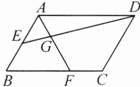 7. 【2021·安徽 T23(3)核心考法】如图,平行四边形$ABCD$的边长$AD = 3$,$AB = 2$,$\angle BAD = 120^{\circ}$,$E$为$AB$的中点,$F$在边$BC$上,且$BF = 2FC$,$AF$与$DE$交于点$G$,求$AG$的长。