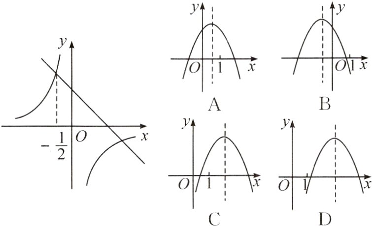 2.(2024·合肥庐阳区模拟)已知反比例函数$y=\frac{k}{x}(k\neq0)$与一次函数$y = -x + b$的图象如图所示,则函数$y = kx^{2}+bx + k + 2$的图象可能为 ( )
