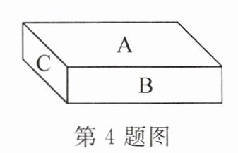 4.如图,一块砖的A,B,C三个面的面积比为4∶2∶1,A,B,C面分别向下放在地上,地面所受压强为$p_1$,$p_2$,$p_3$.压强的计算公式为$p = \frac{F}{S}$,其中p是压强,F是压力,S是受力面积,则$p_1$,$p_2$,$p_3$的大小关系是____________.