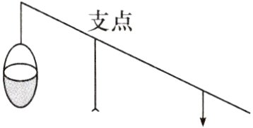 13.【跨学科·物理】(2023·合肥38中期中)一杠杆装置如图,杆的一端吊起一桶水,水桶对杆的拉力的作用点到支点的杆长固定不变.甲、乙、丙、丁四位同学分别在杆的另一端竖直向下施加压力$F_{甲}$,$F_{乙}$,$F_{丙}$,$F_{丁}$,将相同质量的水桶吊起同样的高度.若$F_{丙}<F_{乙}<F_{甲}<F_{丁}$,则这四位同学对杆的压力的作用点到支点的距离最远的是_____同学.