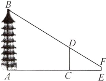 11. 【数学文化】(2023·阜阳临泉县期末)在《数书九章》中记载了一个测量塔高的问题:如图,AB 表示塔的高度,CD 表示竹竿顶端到地面的高度,EF 表示人到地面的高度,AB,CD,EF 在同一平面内,点 A,C,E 在一条水平直线上,已知 AC = 20 米,CE = 10 米,CD = 7 米,EF = 1.4 米,人从点 F 远眺塔顶 B,视线恰好经过竹竿的顶端 D.根据以上信息,求塔 AB 的高度.