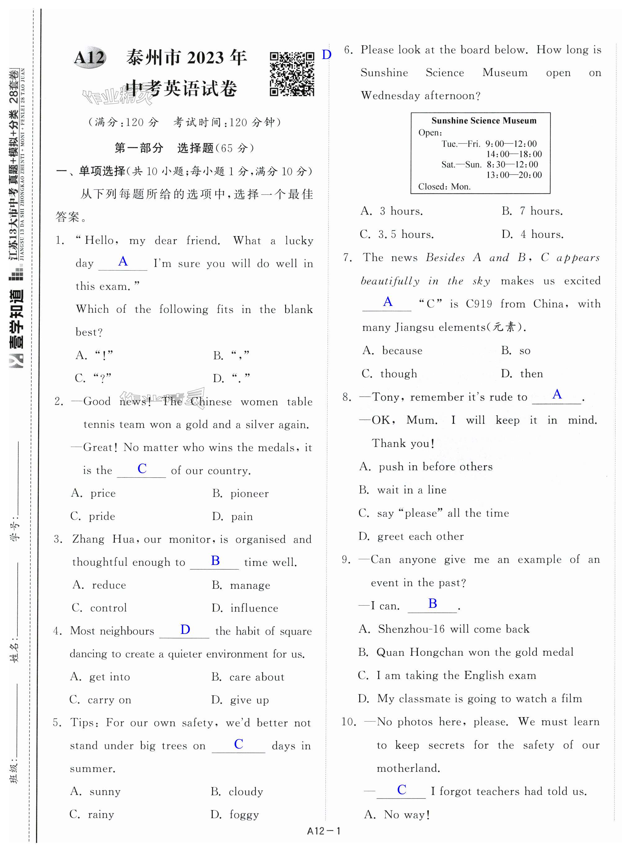 注:目前有些书本章节名称可能整理的还不是很完善,但都是按照顺序排列的,请同学们按照顺序仔细查找。练习册 2025年江苏13大市中考28套卷中考英语 答案主要是用来给同学们做完题方便对答案用的,请勿直接抄袭。