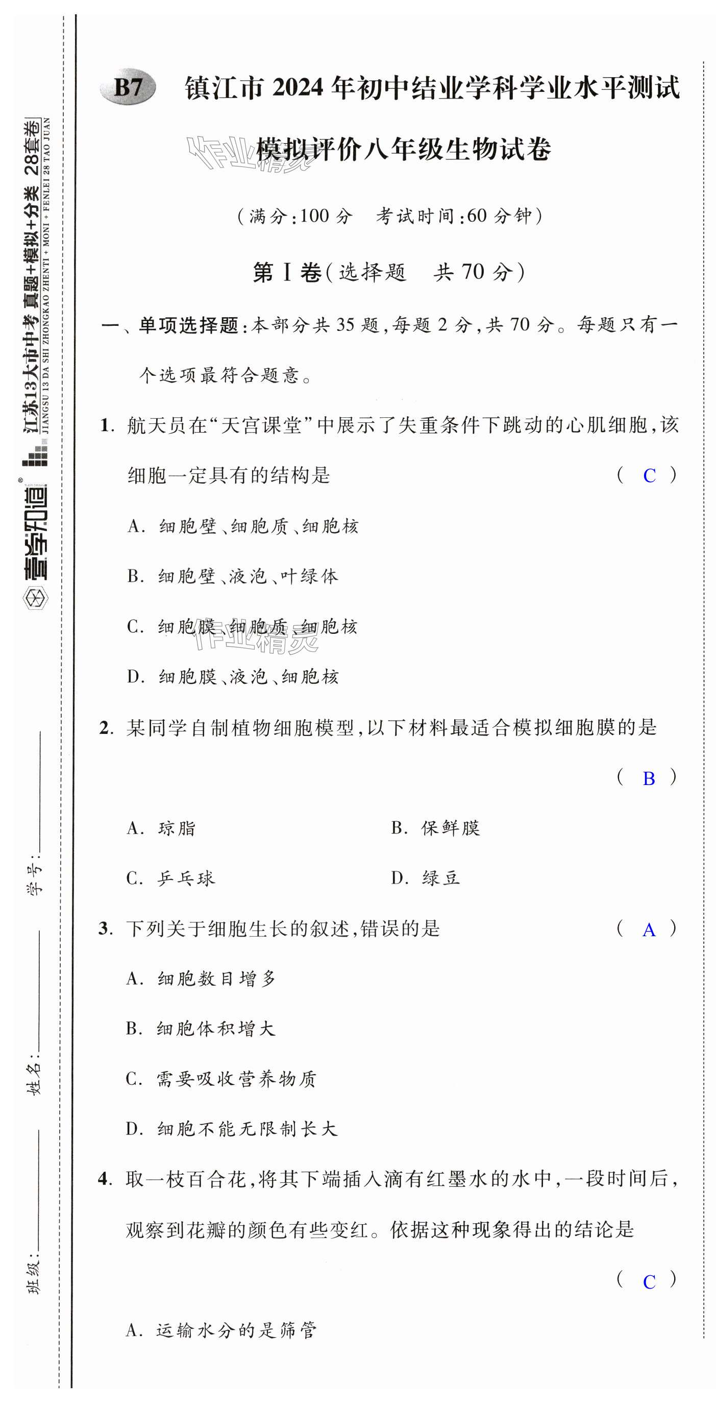 注:目前有些书本章节名称可能整理的还不是很完善,但都是按照顺序排列的,请同学们按照顺序仔细查找。练习册 2025年江苏13大市中考28套卷中考生物 答案主要是用来给同学们做完题方便对答案用的,请勿直接抄袭。
