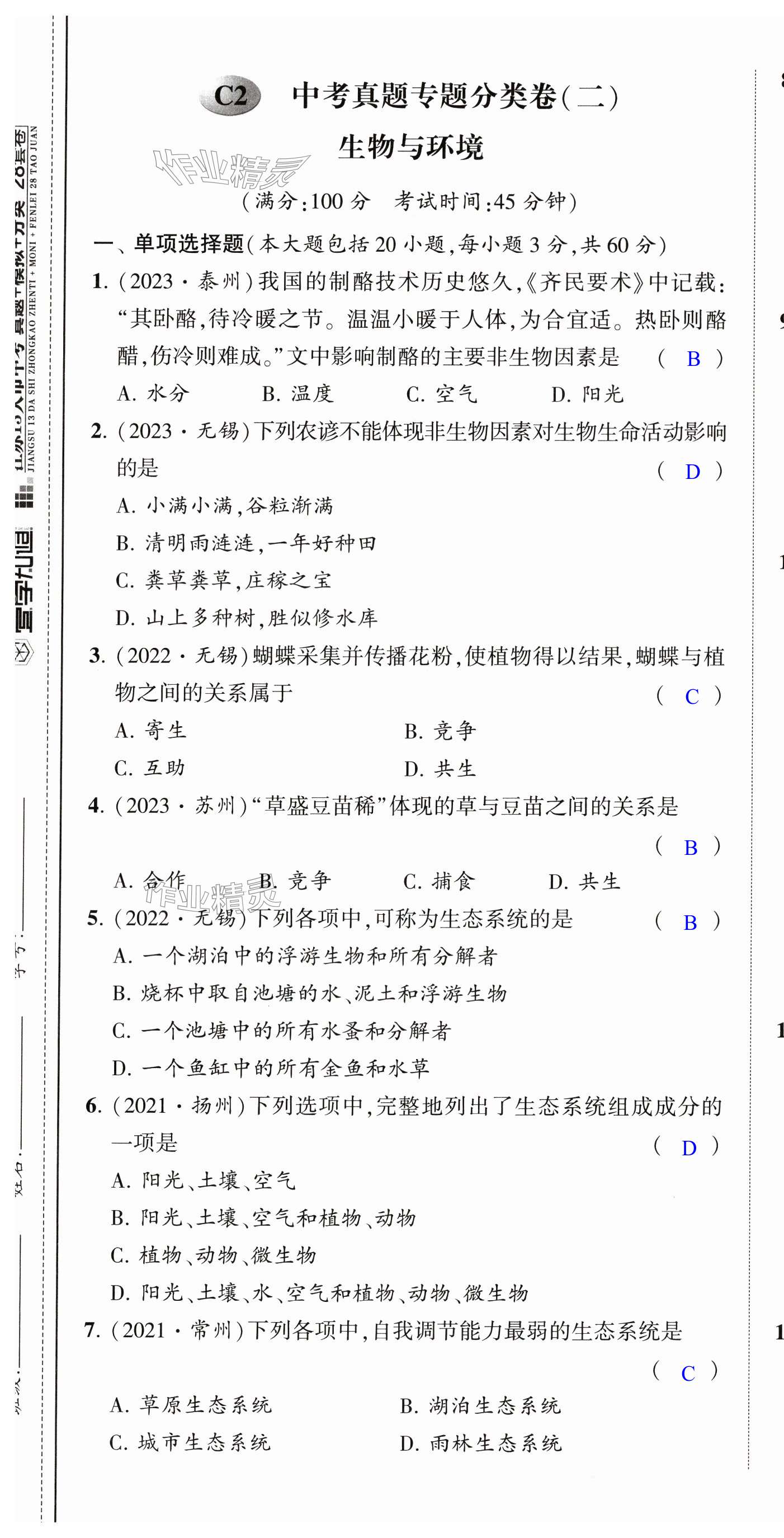 注:目前有些书本章节名称可能整理的还不是很完善,但都是按照顺序排列的,请同学们按照顺序仔细查找。练习册 2025年江苏13大市中考28套卷中考生物 答案主要是用来给同学们做完题方便对答案用的,请勿直接抄袭。