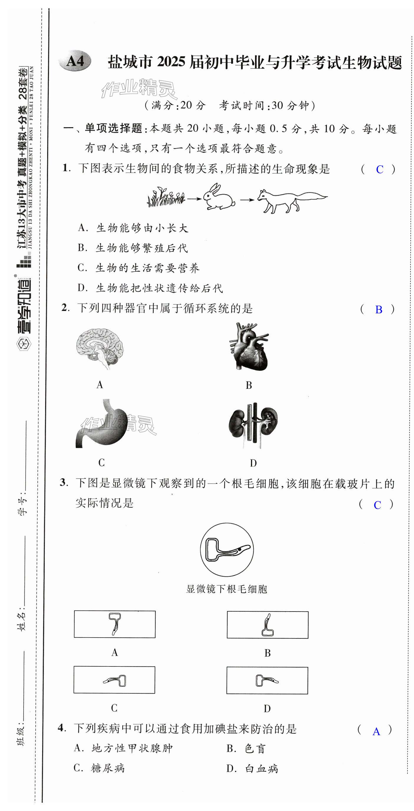 注:目前有些书本章节名称可能整理的还不是很完善,但都是按照顺序排列的,请同学们按照顺序仔细查找。练习册 2025年江苏13大市中考28套卷中考生物 答案主要是用来给同学们做完题方便对答案用的,请勿直接抄袭。