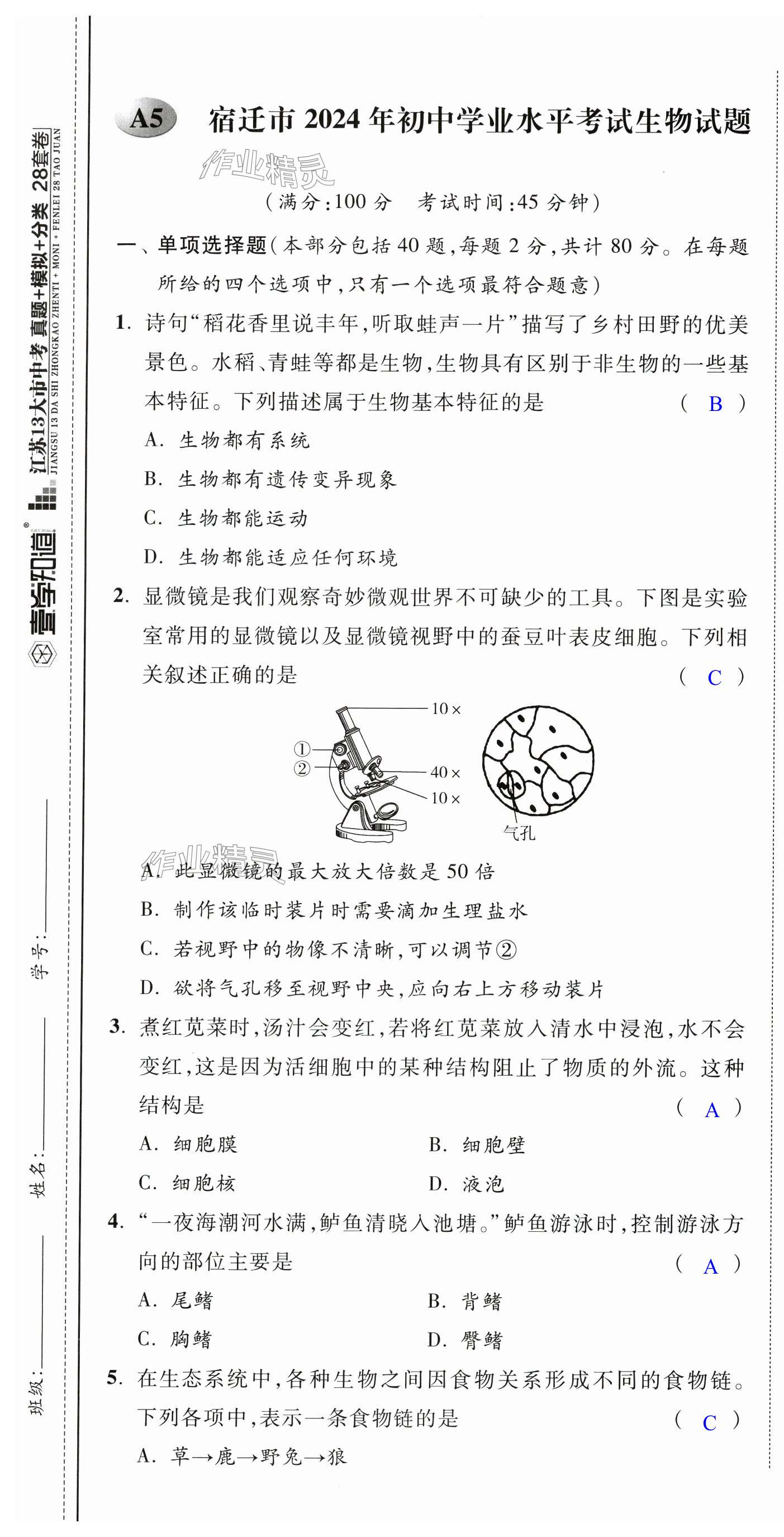 注:目前有些书本章节名称可能整理的还不是很完善,但都是按照顺序排列的,请同学们按照顺序仔细查找。练习册 2025年江苏13大市中考28套卷中考生物 答案主要是用来给同学们做完题方便对答案用的,请勿直接抄袭。