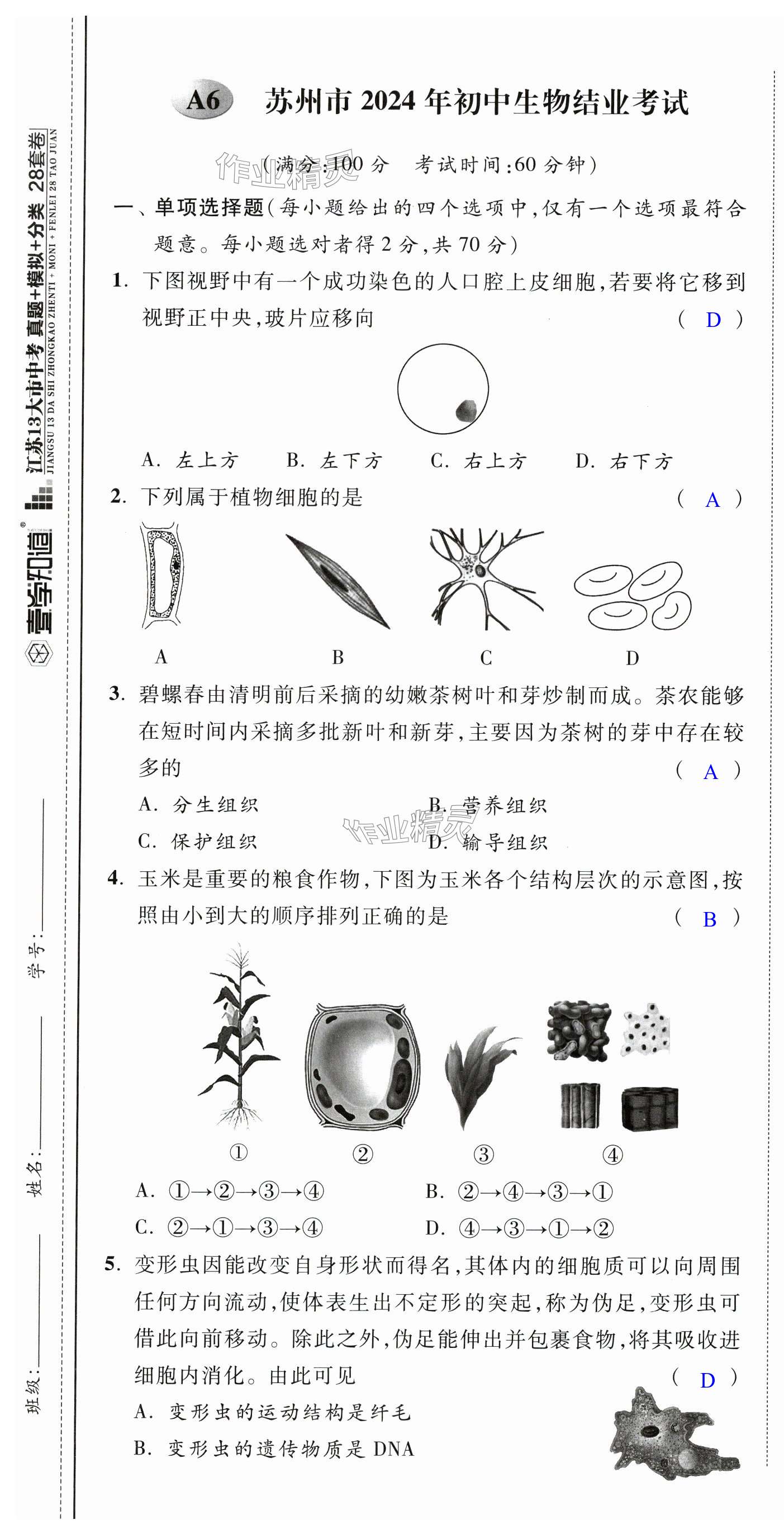 注:目前有些书本章节名称可能整理的还不是很完善,但都是按照顺序排列的,请同学们按照顺序仔细查找。练习册 2025年江苏13大市中考28套卷中考生物 答案主要是用来给同学们做完题方便对答案用的,请勿直接抄袭。
