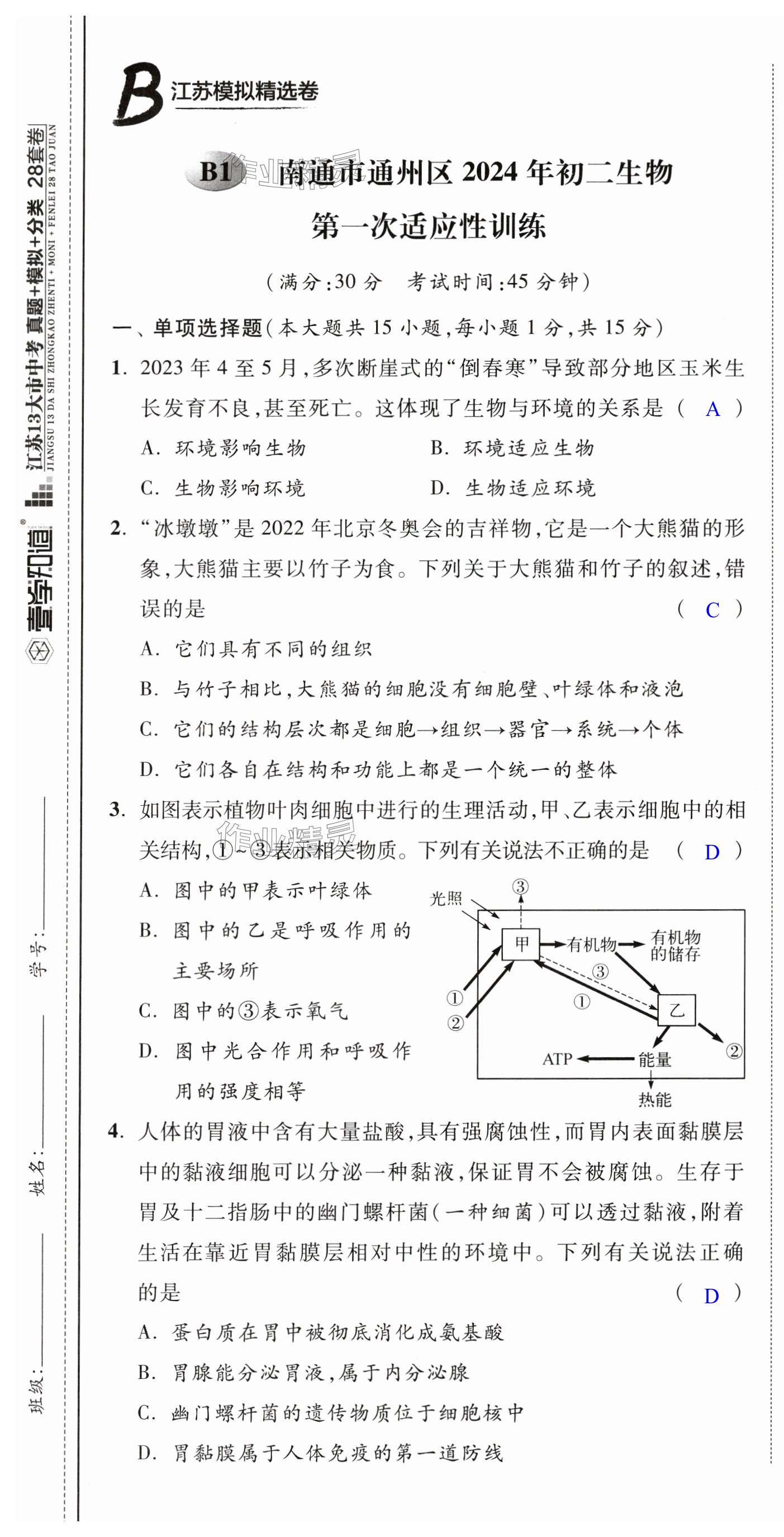 注:目前有些书本章节名称可能整理的还不是很完善,但都是按照顺序排列的,请同学们按照顺序仔细查找。练习册 2025年江苏13大市中考28套卷中考生物 答案主要是用来给同学们做完题方便对答案用的,请勿直接抄袭。