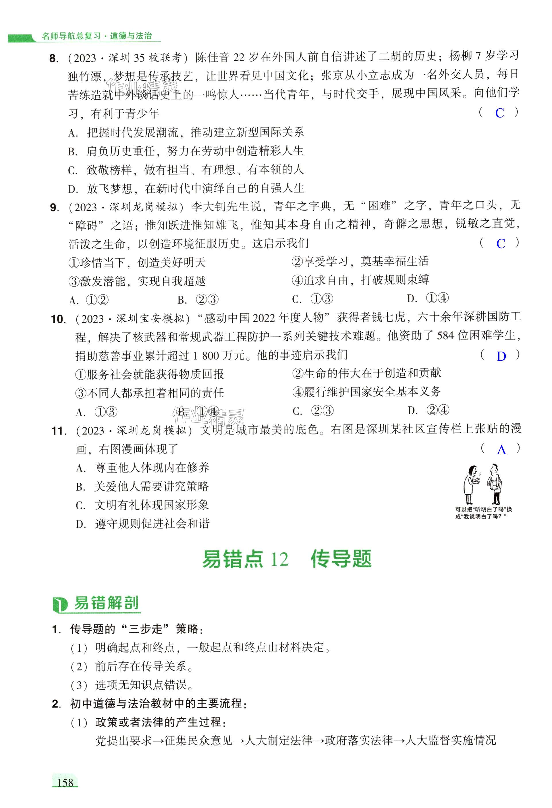 注:目前有些书本章节名称可能整理的还不是很完善,但都是按照顺序排列的,请同学们按照顺序仔细查找。练习册 2025年名师导航总复习道德与法治深圳专版 答案主要是用来给同学们做完题方便对答案用的,请勿直接抄袭。