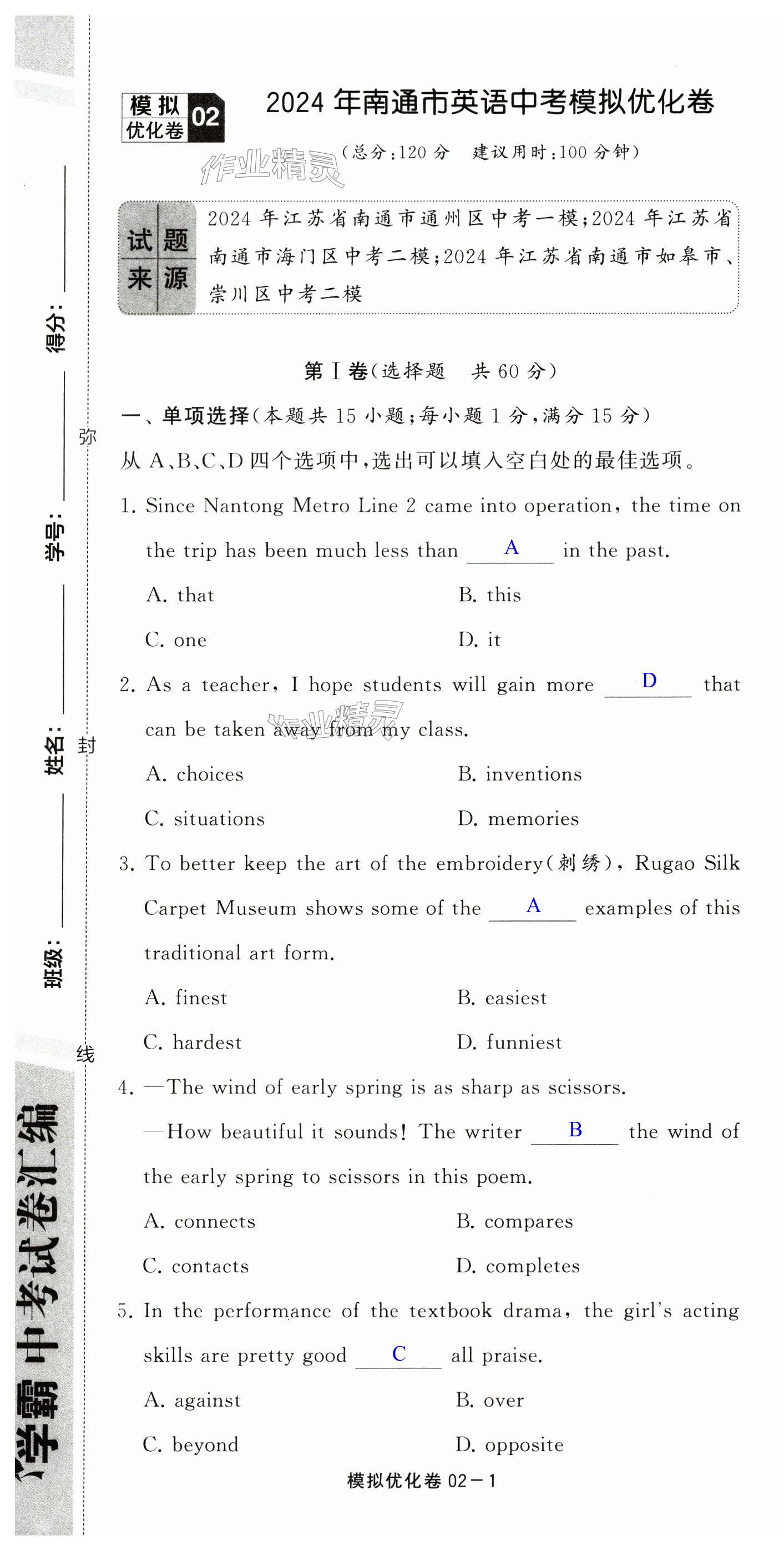 注:目前有些书本章节名称可能整理的还不是很完善,但都是按照顺序排列的,请同学们按照顺序仔细查找。练习册 2025年学霸中考试卷汇编38套英语 答案主要是用来给同学们做完题方便对答案用的,请勿直接抄袭。