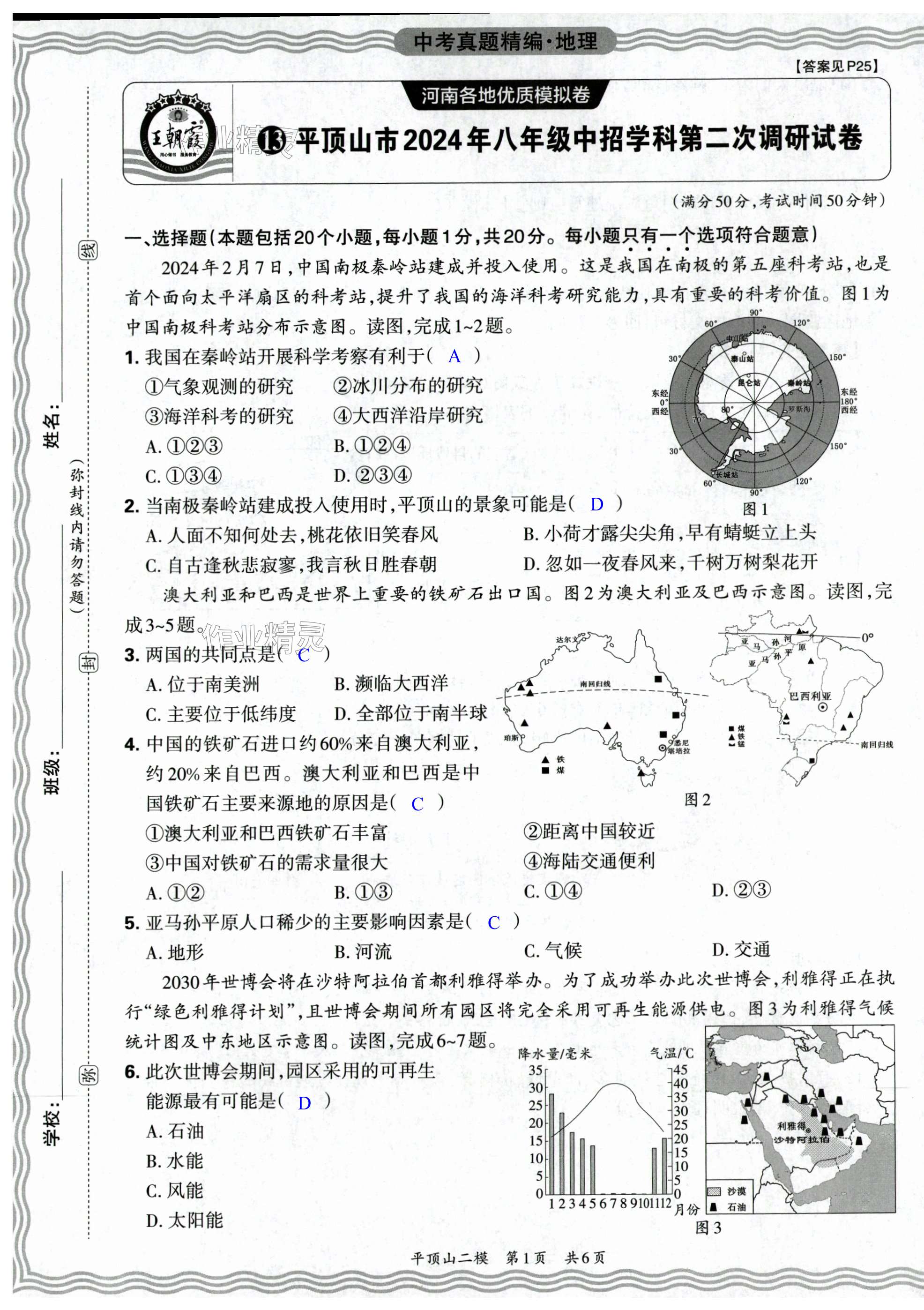 2025年王朝霞中考真题精编地理河南专版