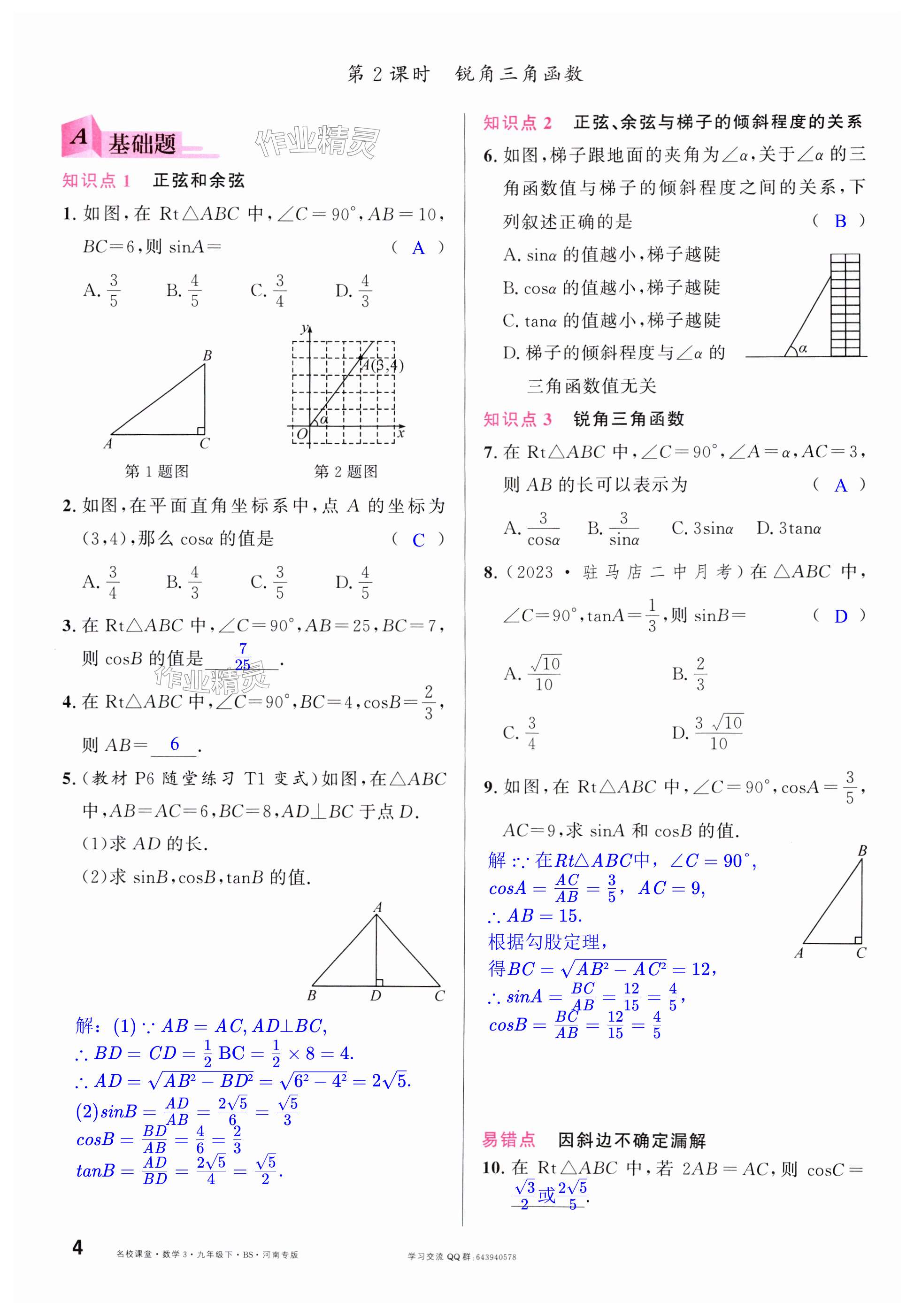 注:目前有些书本章节名称可能整理的还不是很完善,但都是按照顺序排列的,请同学们按照顺序仔细查找。练习册 2025年名校课堂九年级数学3下册北师大版河南专版 答案主要是用来给同学们做完题方便对答案用的,请勿直接抄袭。