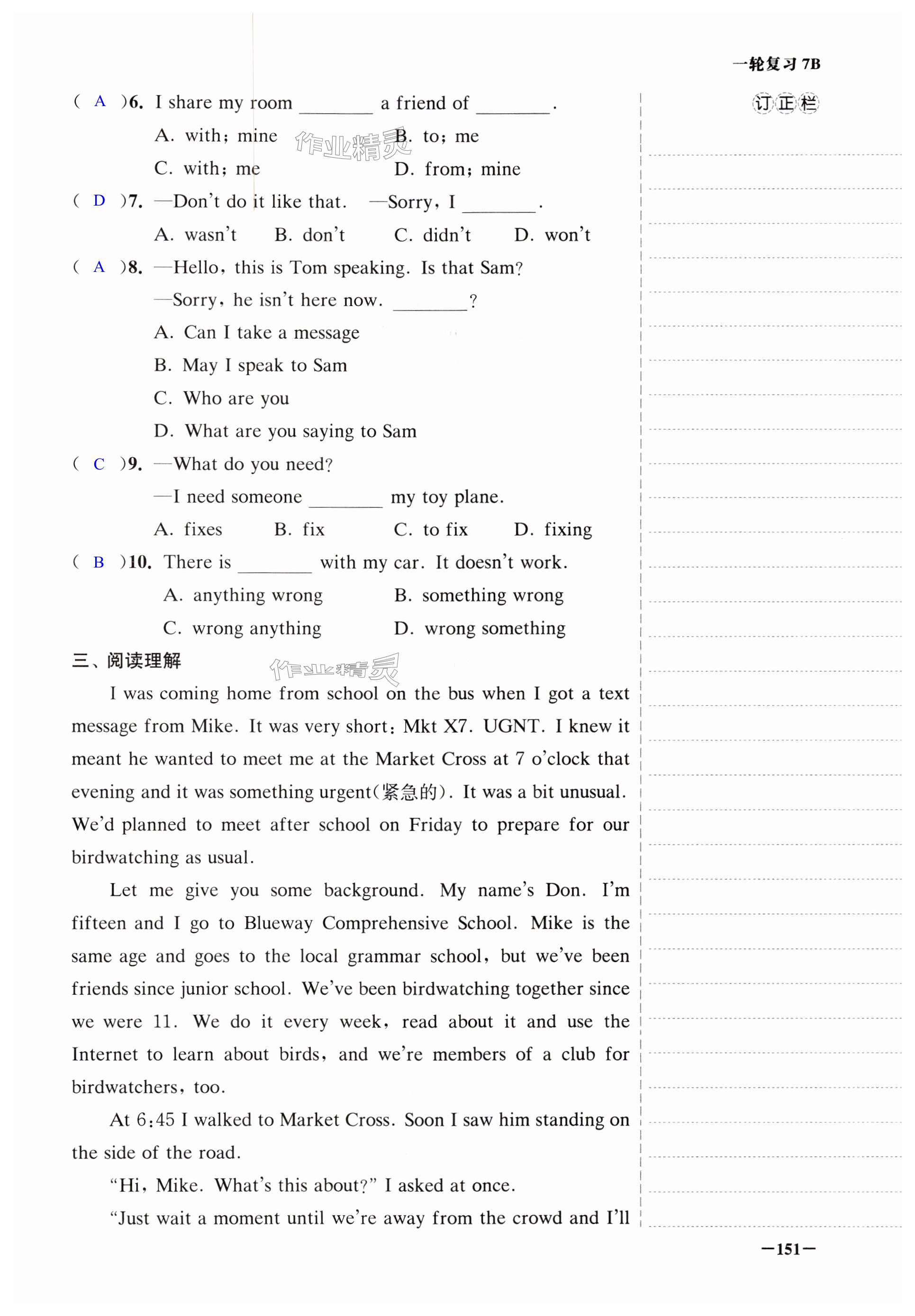 注:目前有些书本章节名称可能整理的还不是很完善,但都是按照顺序排列的,请同学们按照顺序仔细查找。练习册 2025年课堂追踪九年级英语下册译林版 答案主要是用来给同学们做完题方便对答案用的,请勿直接抄袭。