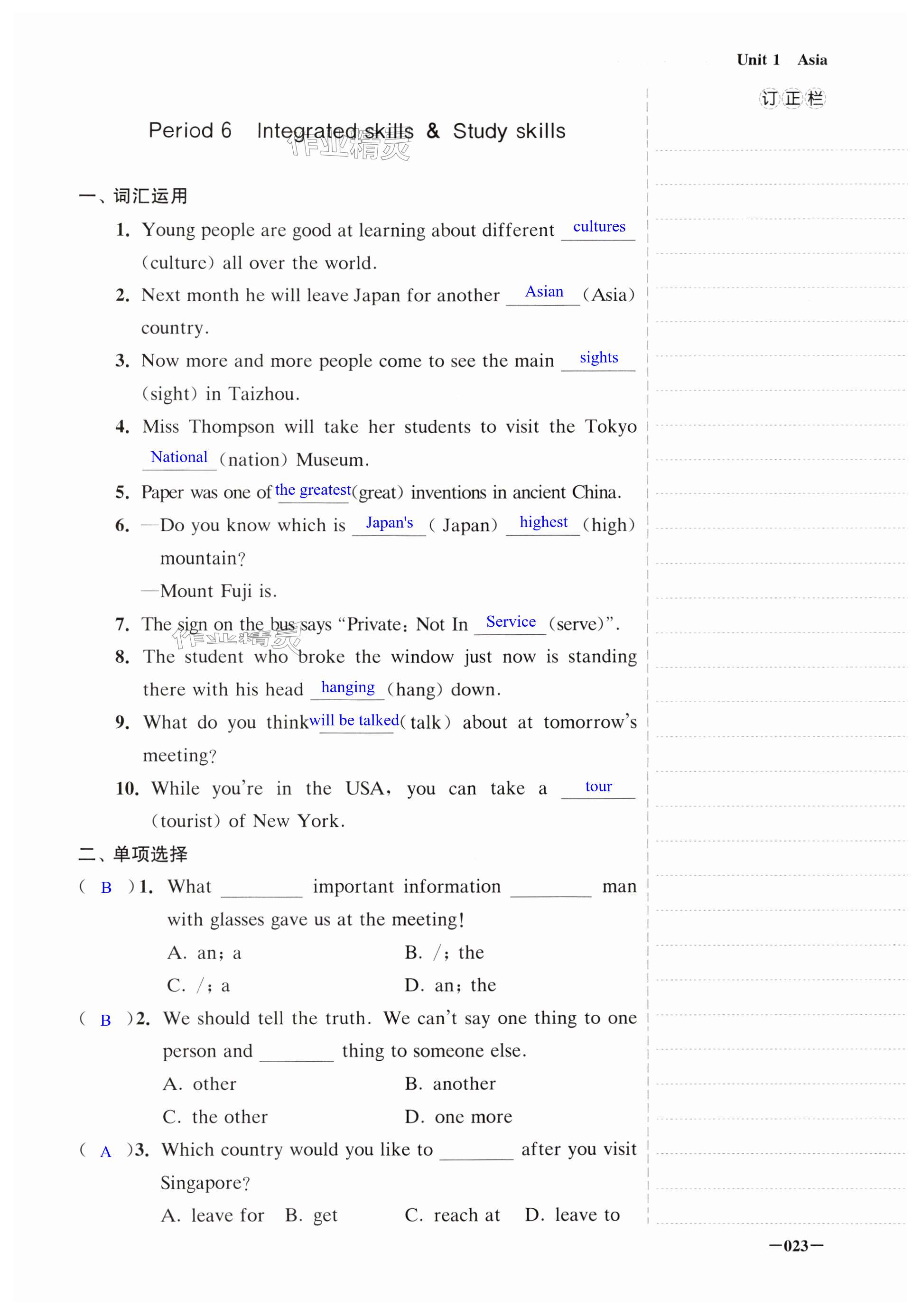 注:目前有些书本章节名称可能整理的还不是很完善,但都是按照顺序排列的,请同学们按照顺序仔细查找。练习册 2025年课堂追踪九年级英语下册译林版 答案主要是用来给同学们做完题方便对答案用的,请勿直接抄袭。