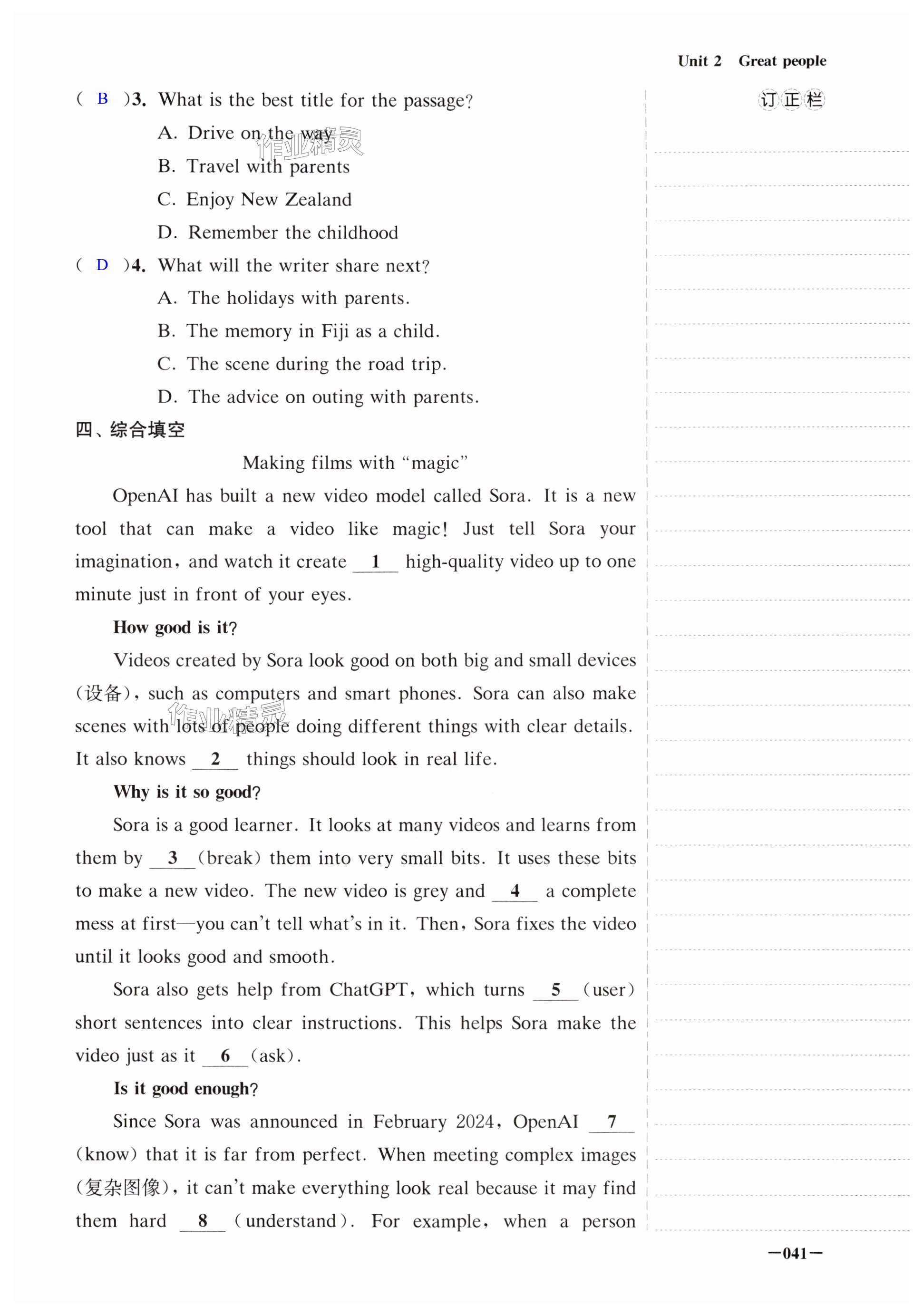 注:目前有些书本章节名称可能整理的还不是很完善,但都是按照顺序排列的,请同学们按照顺序仔细查找。练习册 2025年课堂追踪九年级英语下册译林版 答案主要是用来给同学们做完题方便对答案用的,请勿直接抄袭。