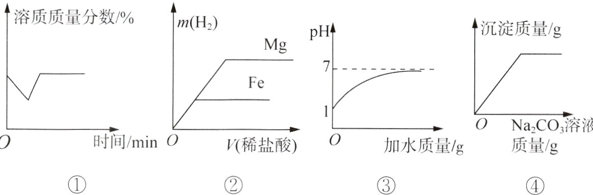 B. 图②表示向等质量的镁和铁中分别逐渐加入盐酸至过量