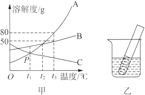 (4)t₁℃时,将盛有C的饱和溶液的小试管放入盛水的烧杯中(如图乙所示),向烧杯中加入一定量的氢氧化钠固体后,试管中可能出现的现象是____________________。