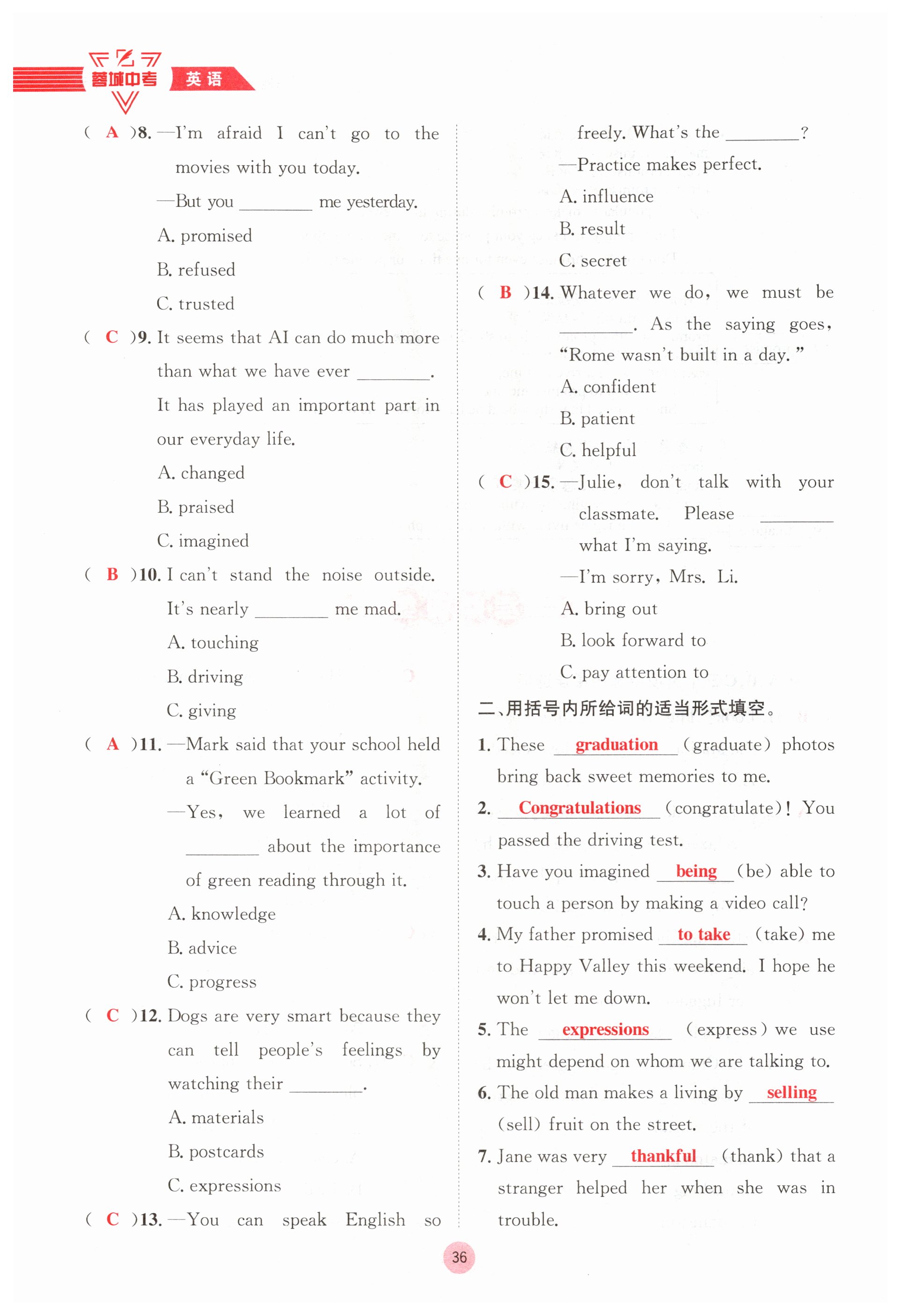 注:目前有些书本章节名称可能整理的还不是很完善,但都是按照顺序排列的,请同学们按照顺序仔细查找。练习册 2025年蓉城中考英语 答案主要是用来给同学们做完题方便对答案用的,请勿直接抄袭。