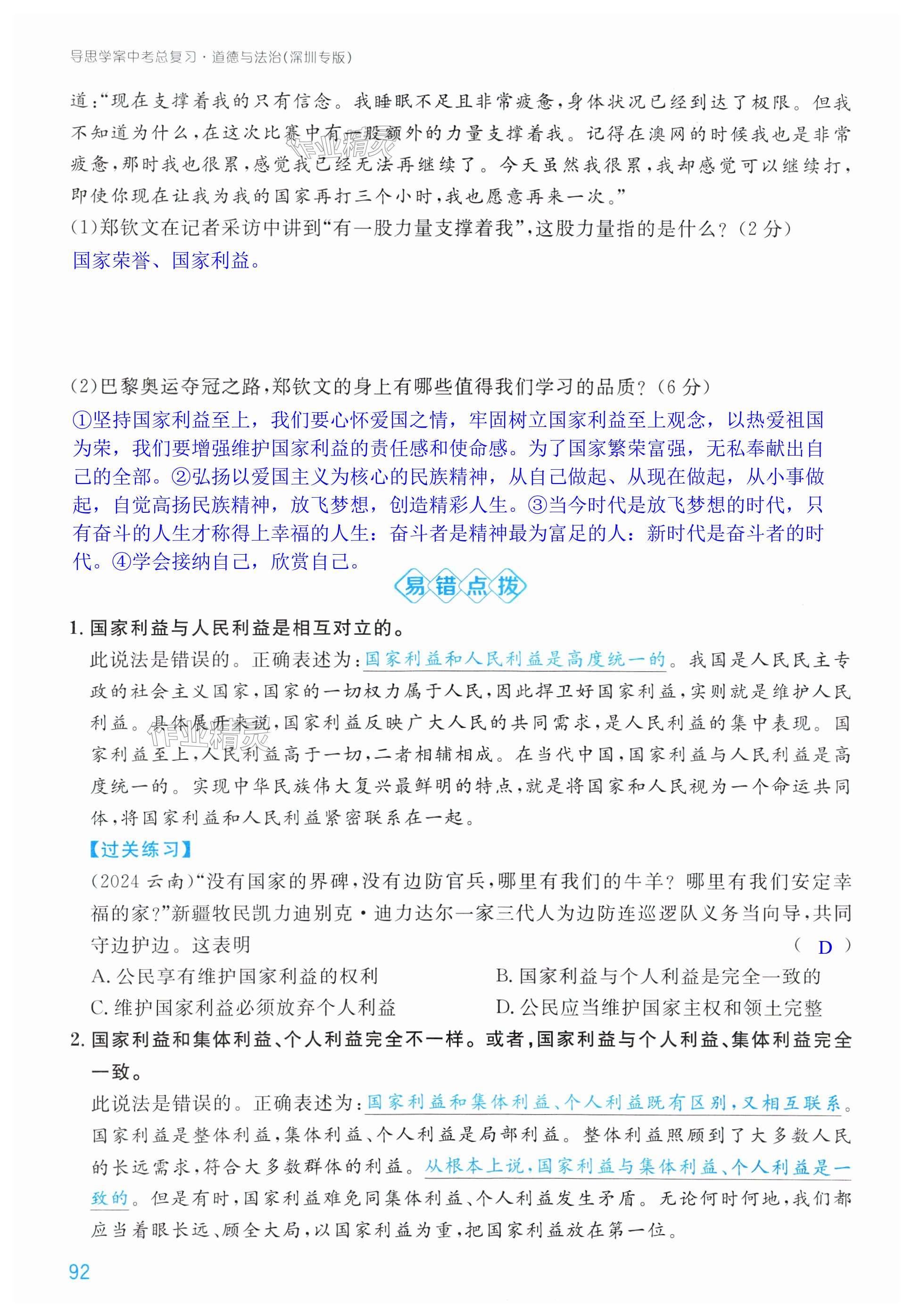 注:目前有些书本章节名称可能整理的还不是很完善,但都是按照顺序排列的,请同学们按照顺序仔细查找。练习册 2025年导思学案道德与法治中考深圳专版 答案主要是用来给同学们做完题方便对答案用的,请勿直接抄袭。