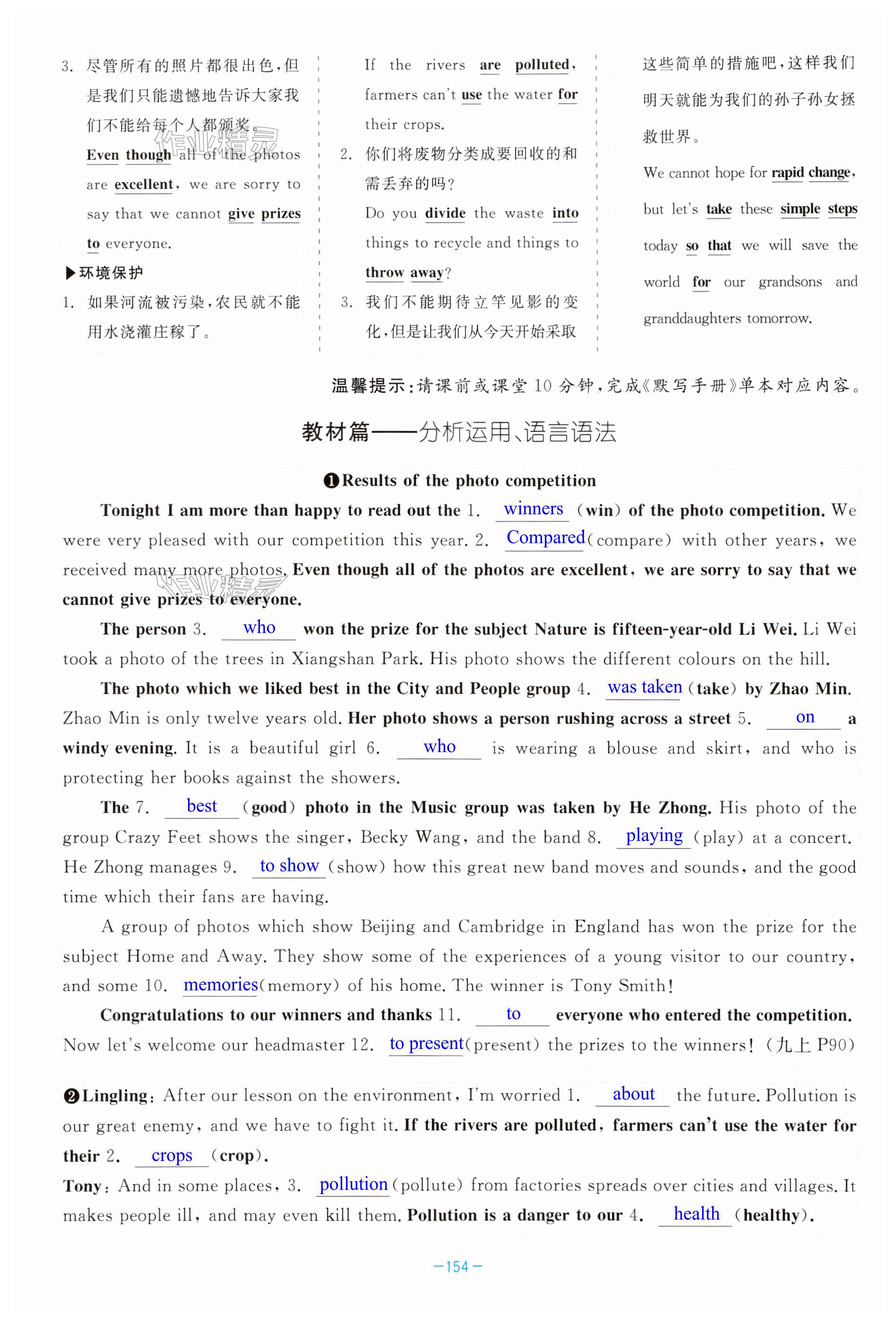 注:目前有些书本章节名称可能整理的还不是很完善,但都是按照顺序排列的,请同学们按照顺序仔细查找。练习册 2025年精彩三年中考英语外研版 答案主要是用来给同学们做完题方便对答案用的,请勿直接抄袭。