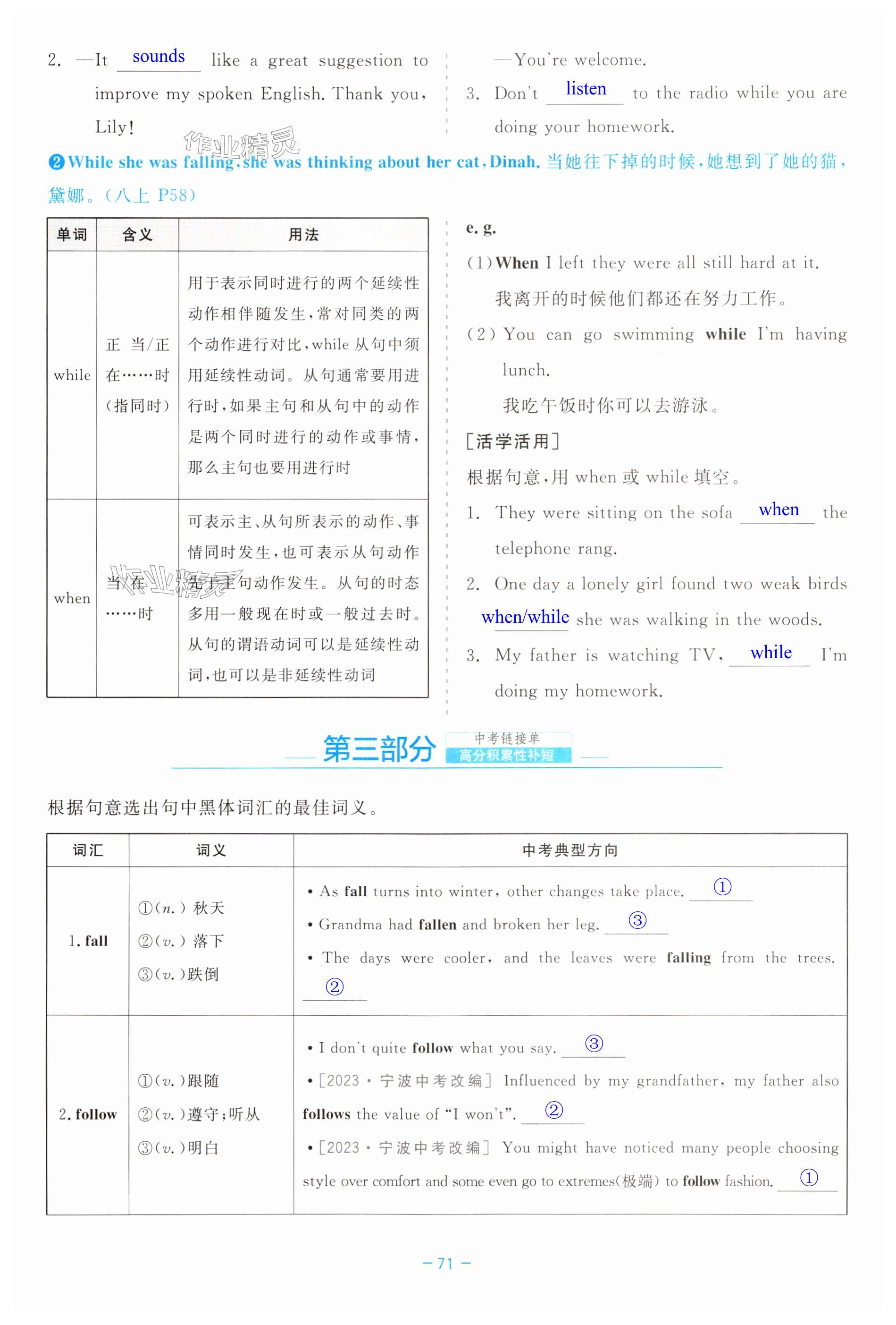 注:目前有些书本章节名称可能整理的还不是很完善,但都是按照顺序排列的,请同学们按照顺序仔细查找。练习册 2025年精彩三年中考英语外研版 答案主要是用来给同学们做完题方便对答案用的,请勿直接抄袭。