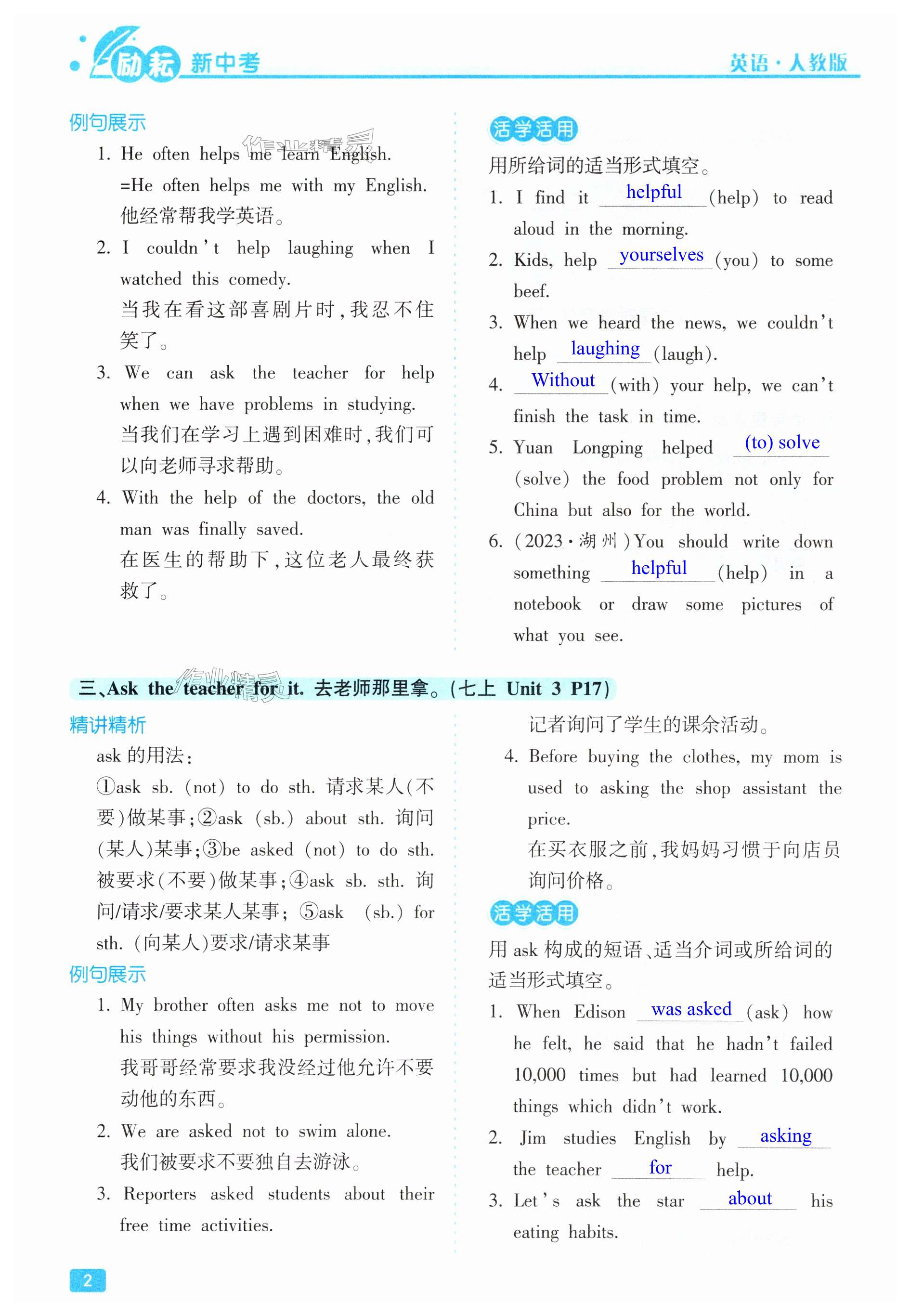 注:目前有些书本章节名称可能整理的还不是很完善,但都是按照顺序排列的,请同学们按照顺序仔细查找。练习册 2025年励耘新中考英语人教版 答案主要是用来给同学们做完题方便对答案用的,请勿直接抄袭。
