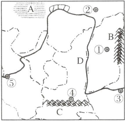 高原A是________,山脉B是________,山脉C是________,河流D是________。