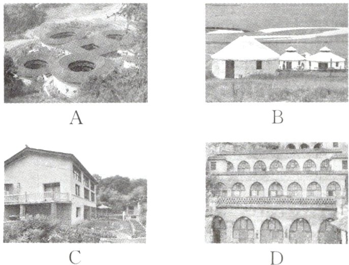 12. 下列民居主要分布在黄土高原地区的是( )