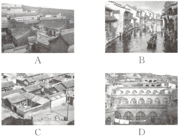4. 不同的民居特点反映了不同地区的地理环境特点。下面传统民居位于我国南方地区的是( )