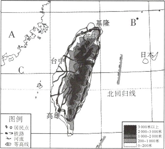 (2)图中B处的岛屿是__________,它位于台湾岛的________方向。