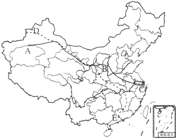 (1) 图中所示的西气东输一线工程,是将A __________盆地的天然气输往__________地区,沿途经过B __________高原,目的地C __________(直辖市)位于__________(海洋)沿岸。