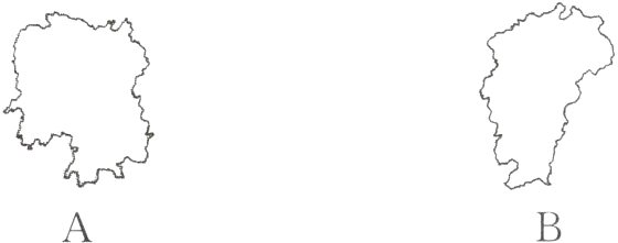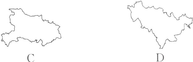 5. 下列各省区轮廓中,属于北方地区的是 ( )