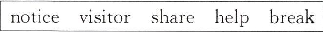 1. share 2. broken 3. visitors' 4. helpful 5. notice